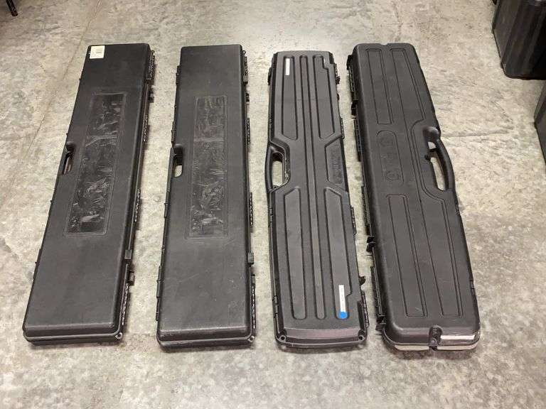 Includes a lot of 4 hard shell gun cases in black. Variety of sizes and styles. Please see photos for details.