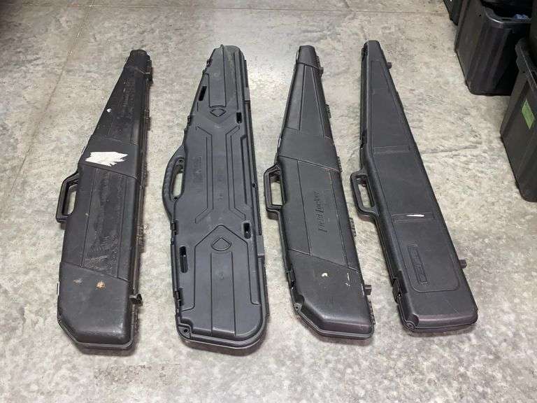 This lot includes four hard plastic gun cases, in varying styles and sizes. Brands include Plano and Field Locker. Protect your firearms during transport and storage with these durable cases.