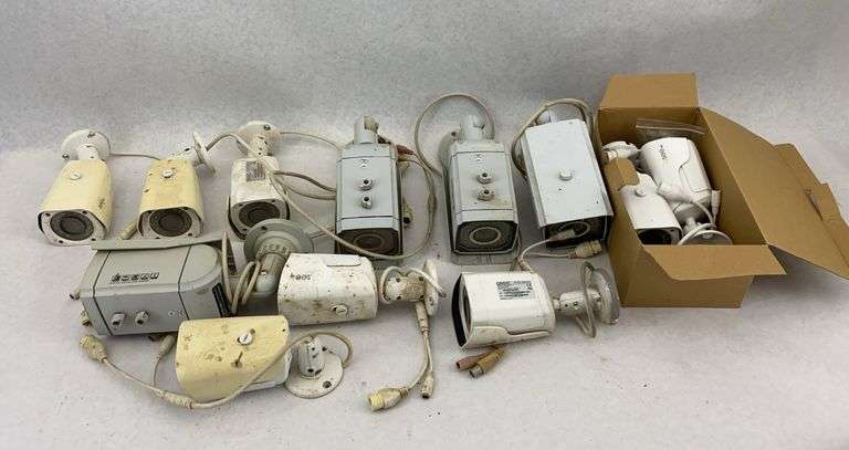 This lot includes multiple Q-See IP HD Security Cameras. Models include QCN8033B. These cameras are suitable for a variety of security applications.
