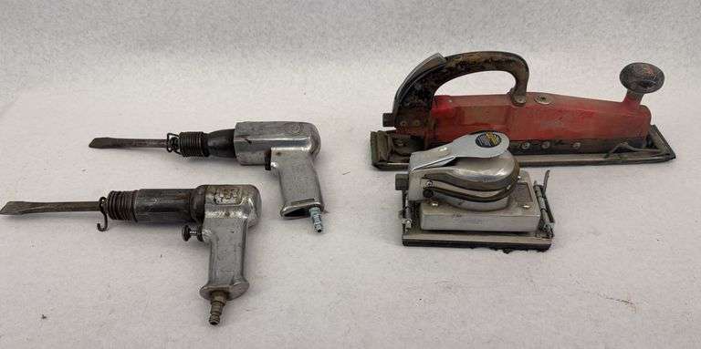 This lot features two pneumatic air chisel guns and two power sanders. These tools are ready for your workshop.