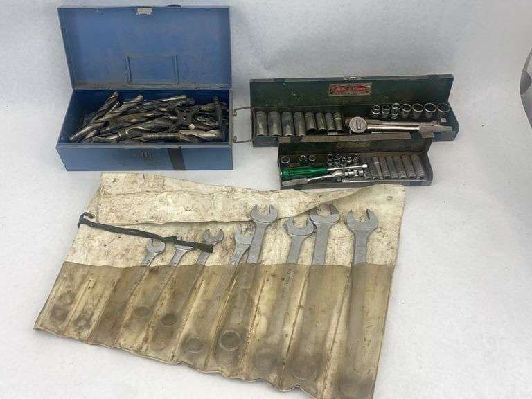 Includes a set of open-end wrenches in a storage pouch. Also included are 3 metal cases.