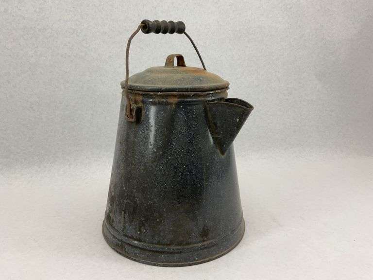 LOT 170b - Speckled Enamelware Coffee Pot with Wood Handle