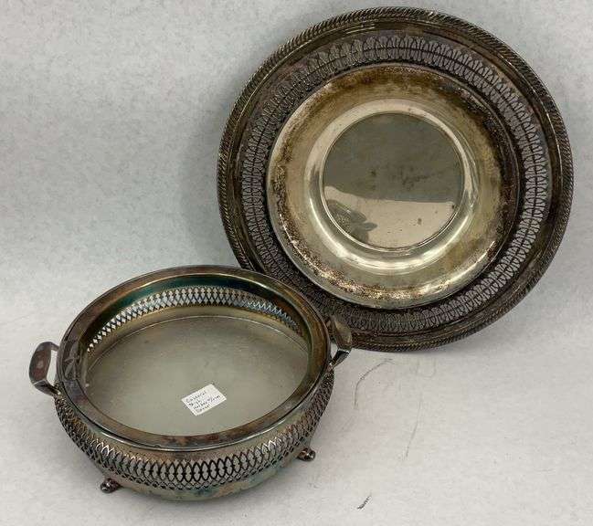 Includes a Forges Silver Co. Quadra Plate and a matching casserole dish with handles and pierced design.