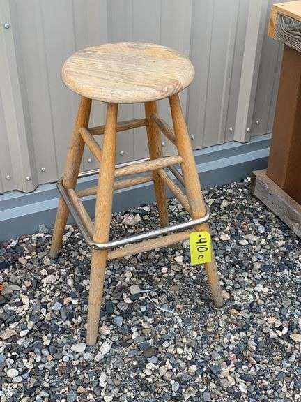 LOT 410c - Wooden Bar Stool with Metal Footrest