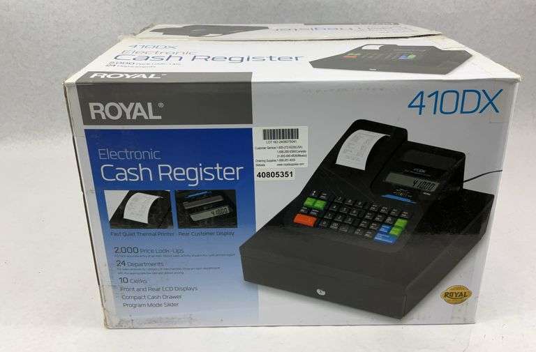Royal 410DX Electronic Cash Register, new in box. Powers up. New