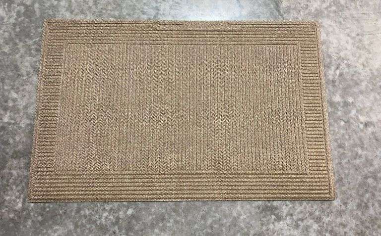 Tan floor mat. Measures 30 x 47 inches and is in like new condition, with an 8 inch blemish on the top.