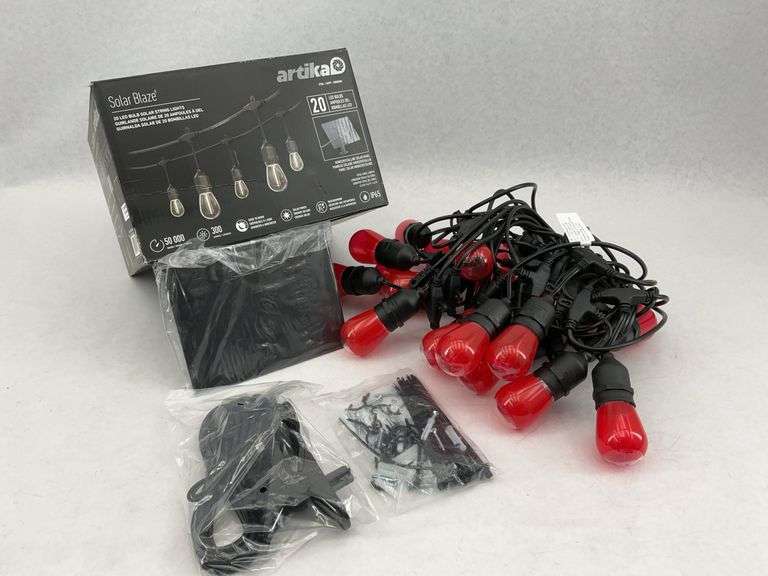 Artika Solar Blaze 20 LED Bulb String Lights . Slight damage on sides of box, small gash in top of box, and slight damage from prior opening.
