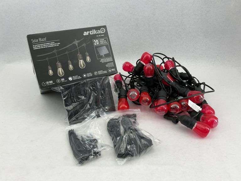 Artika Solar Blaze 20 LED Bulb Solar String Lights. 12.8 M / 42 FT / 42 PI. Slight damage from prior opening. Not tested