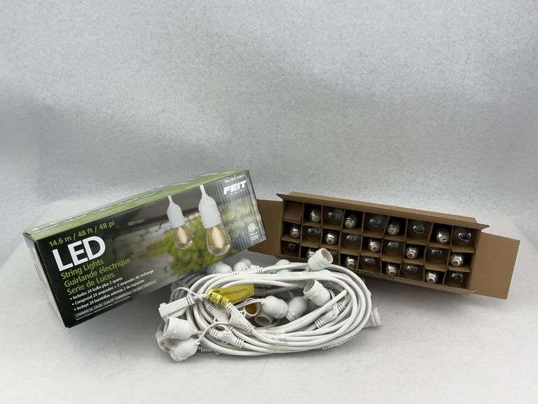 Feit Electric 14.6 m / 48 ft string lights. 26 LED Bulbs included. Model S14/822/PC. New and tested.