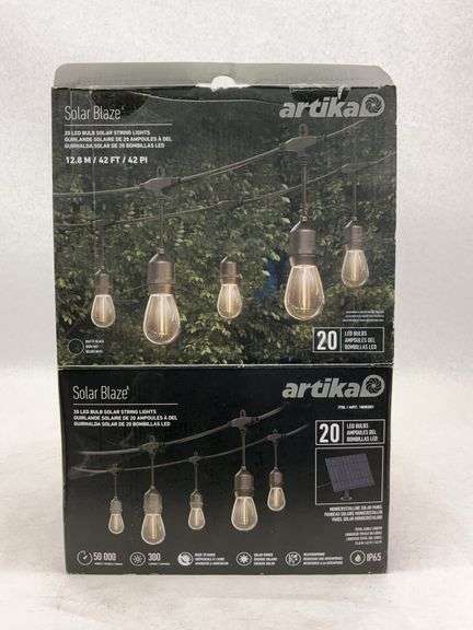 Artika Solar Blaze 20 LED Bulb String Lights. Used and box has little blemishes. Also includes an additional set of red LED bulbs.