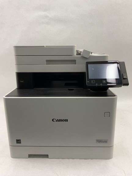 Canon imageCLASS MF733Cdw color laser multi-function printer offering print, copy, scan, and fax capabilities. This all-in-one unit features wireless connectivity, automatic document feeder, and touchscreen control panel. Model MF733Cdw manufactured in Vietnam, suitable for office or home office use.