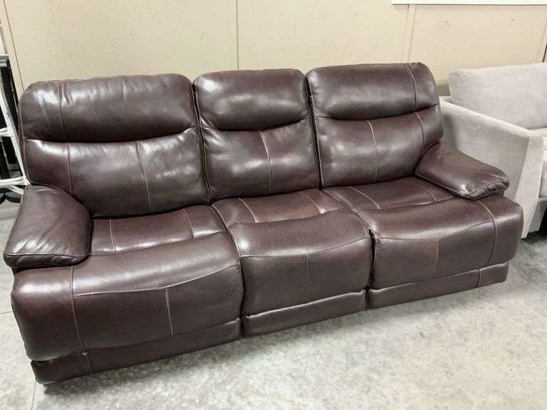 Showroom floor model with minimal signs of use. One small scratch visible on the leather surface (see Image 7). One small stain present on cushion area (see Image 8). Minor scuffing consistent with showroom display. All three power reclining mechanisms are functional. USB ports present and appear intact. Overall condition reflects light showroom wear. Refer to the pictures and in person inspection for condition.